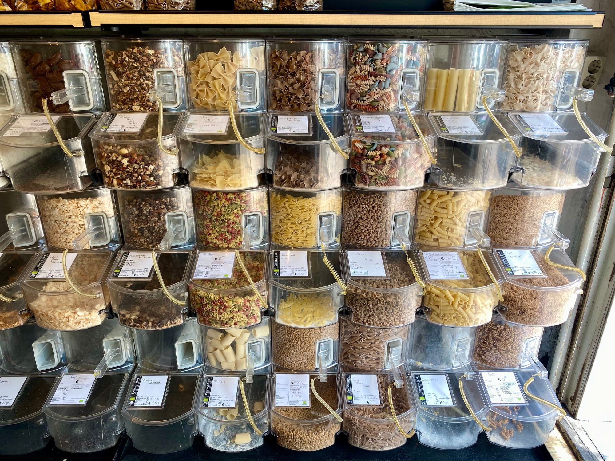 Ondanks dat ik pasta super lekker vind, eet ik het eigenlijk weinig omdat het een zeer koolhydraatrijk product is. Ik maak pasta dan ook meestal voor een speciale gelegenheid of ik gebruik courgetti als vervanger. Maar hoewel ik het weinig eet, heb ik wel altijd pasta in huis, mede omdat het ook erg lang houdbaar is. Helaas wordt bijna alles pasta in de supermarkt in plastic verkocht. Heel soms zit het in karton verpakt, maar dit is niet in elke supermarkt zo. Karton is altijd een betere optie dan plastic omdat het goed recyclebaar is. Gelukkig zijn er ook winkels die onverpakte pasta's verkopen. Neem je eigen weckpot of zakje om het in mee te nemen. Onverpakte pasta koop je in de volgende winkels:
